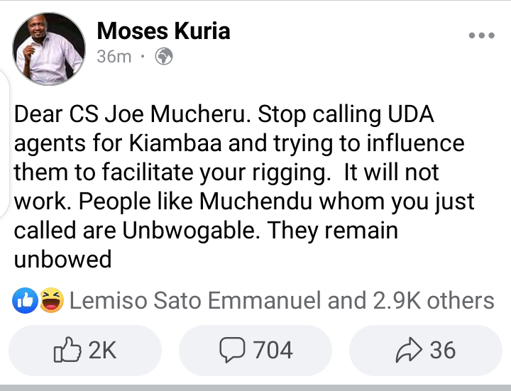 The kiambaa election election seems to be a hot cake following a clash between supporters of uhuru kenyatta's candidate and william ruto's candidates over a venue.